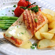 In a large skillet, heat the olive oil over high heat and fry the fish for 2 minutes on each side. Serve with the sauce.