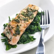 Salmon in Balsamic Glaze with Spinach, Olives, and Raisins