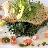 Salmon in Creamy Wine Sauce with Warm Spinach