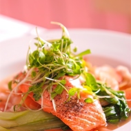 Lightly sear the salmon and place it in an oven preheated to 356°F for 7 to 8 minutes.