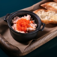 A special type of pâté known as rillettes originates from the Touraine region. One theory about its name comes from the French word 'rille,' meaning 'ear,' which hints at the fact that all parts of the animal were used in making rillettes. It's no wonder that many culinary researchers have drawn parallels between French rillettes and Russian aspic. While in high French cuisine, rillettes have become more refined—now made with poultry, noble fish, rabbits, and other game—what sets rillettes apart from other pâtés is their texture: typically, you can feel distinct pieces in rillettes, while pâtés and terrines are smoother. The filling is also important; pâtés often include nuts, lemon zest, or, as in this fish recipe, caviar—these not only enhance the presentation but also add flavor. A great breakfast option for using up leftovers—prepare a larger batch of rillettes in advance, and in the morning, all you need to do is toast some bread or grab a fresh baguette.