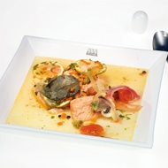 Cook for ten to fifteen minutes. Remove the fish and vegetables, place them on a plate, and pour the remaining broth made from the fish and wine over them. There will be only a little broth, and it serves more as a sauce in this soup.
