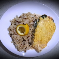 Salmon Steak with Soy-Cream Sauce and Cheese