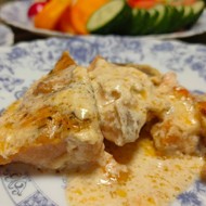 Any part of the salmon can be used for this dish. It is easiest to take pieces, as they are sure to be boneless. If the fish is not frozen, it will cook very quickly. The main thing is not to overcook it. It is best to use garlic salt or a seasoning with garlic. However, if that is not possible, it is perfectly acceptable to add chopped or dried garlic. Mashed potatoes can be used as a side dish for the fish.