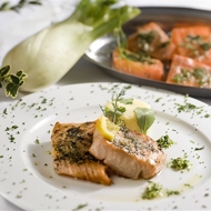 Push the fish to one side of the skillet and add the fennel. Add the Pernod, 2 teaspoons of the butter mixture, and 1 tablespoon of finely chopped fennel fronds. Stir and heat through.