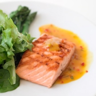 This recipe is a find for gourmets and those who follow a healthy diet. Salmon does not raise blood sugar levels, so to maintain the diet, serve with a side dish that has a low glycemic index.