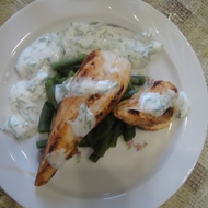 For the sauce, mix the yogurt with chopped herbs, lemon juice (be careful not to overdo it), salt, and pepper.