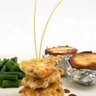 Heat the tomato sauce and serve the fritters at the table, offering the sauce on the side.