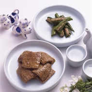 Squeeze the moisture from the potatoes (place them in a cloth and twist tightly), then transfer to a bowl. Mix by hand with the salted meat, the softened onion and garlic, brown sauce, and beaten egg. Add enough breadcrumbs so that the mixture holds together. Season well with salt and pepper.