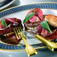 Place half a slice of prosciutto and a sage leaf on each piece of veal and cover them with plastic wrap.