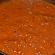 Place the ground mixture into a pot and add salt, pepper, sugar, and vegetable oil. Cook on low heat for 1.5 hours, stirring occasionally.