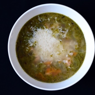 Ladle the soup into bowls, sprinkle it with grated cheese, and serve immediately.