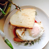 Sandwich with Fried Egg, Ham, and Tomatoes