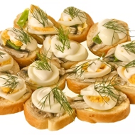 Spread butter on thin slices of white or black bread, and cover them with a layer of finely chopped salted fish.