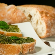 Blanch the greens in boiling water, cool them in the broth, and lightly dry them. Add the nuts, chopped egg, vegetable oil to the greens, and spread this mixture on the slices of bread.