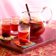 This quantity is designed for approximately 30 people. A recipe from Spanish students. It's easy to drink, but you may have a bad headache the next day. You can use any fruits, but apples, oranges, and lemons are most commonly used.