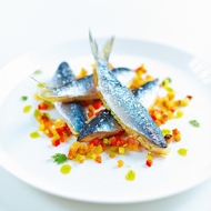 To serve, arrange the vegetable mixture on plates, placing the sardines on top with the bread side down.