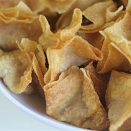 Preheat the oven to 392°F. Remove the backbone from the fish, flake the flesh, and set aside. Lay the sheets of dough on a work surface and brush with a small amount of melted butter. If using phyllo, layer the sheets two at a time (one on top of the other, at an angle).