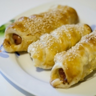 Then wrap each sausage and brush with yolk, making sure to coat all seams thoroughly. Sprinkle with sesame and bake in an air fryer for 25 minutes at a temperature of 257°F.