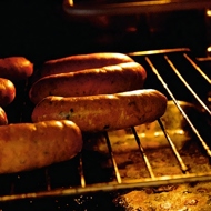 Place the sausages on a rack and put them in a preheated oven at 374°F. It's best to place a tray underneath the rack, as some fat will drip from the sausages. After about 15 minutes, when they are almost cooked, turn them over to ensure they brown evenly. The casing should become golden-brown and crispy. The total cooking time will be around twenty minutes.