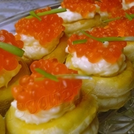 Now let’s get creative and fill our vol-au-vents. The filling should be delicate — pâtés, mousses, caviar, etc.