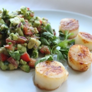 Heat a skillet over high heat, add 2 tablespoons of olive oil, and sauté the rinsed scallops on one side. After a minute, flip them to the other side and cook for another 1.5 to 2 minutes.