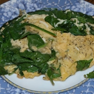 Scrambled eggs with spinach and cheese