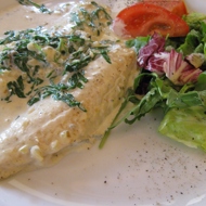 Sea Bass Fillet with Blue Cheese and Arugula Sauce
