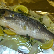 Three minutes before it's done, open the foil and place dill sprigs on top of the fish.