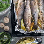 This fish can be enjoyed without any additional sauces, but if a sauce is needed simply as a tradition, you can take the juice of two lemons, mix it with salt, garlic, olive oil, and fresh thyme leaves.