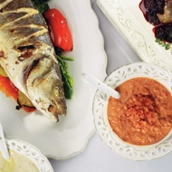 Sea Bass with Walnut Mukhurma and Cedar Nut Tarator