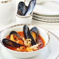 Add the diced fish, oysters, and clams. Cook for one minute.