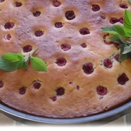 Pour the batter into a greased and semolina-dusted baking tray, spreading the raspberries (or other berries) evenly on top.