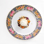 Place a portion of semifreddo on a plate and sprinkle it with coarsely crushed caramelized almonds. You can garnish the dessert with whipped cream and, if available, edible flowers.