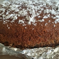 Bake in the oven at 356°F for about 40 minutes. It can be done for a shorter time; just check for doneness with a toothpick. However, if you leave it in a little longer, the inside will have a rich color like melted milk and a very crumbly texture.