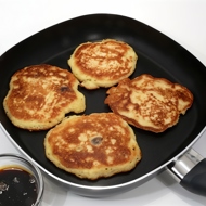 Fry the pancakes on both sides until golden brown. Serve them drizzled with jam.