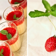 While the pudding is baking, prepare the sauce. Blend the strawberries with honey and lemon juice in a blender.