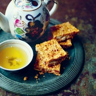 Flip the brittle onto a cutting board and cut into squares. Store in an airtight container. The dessert keeps for a long time but may become slightly sticky over time.
