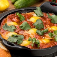 Gently crack the quail eggs into a bowl and add them to the sauce with the heat turned off, making a slight indentation for each yolk.