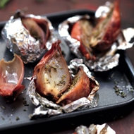 Light the fire under the barbecue grill. Place the onions wrapped in foil and roast them over the coals for 30 minutes. Ten minutes before serving, unwrap the foil (check the onions for doneness by piercing them with a knife).