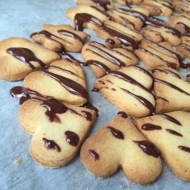 Melt 50 g of dark chocolate and 50 g of butter in a double boiler. Drizzle the cooled cookies with the melted mixture.