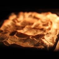 Mix 6 egg yolks, 1 cup of sugar, 1 pack of butter, ½ teaspoon of baking soda (dissolved in vinegar), and flour. Place in a baking dish and prick the surface with a fork around the perimeter.