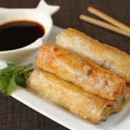 Cut the spring rolls into serving pieces and serve with soy-ginger sauce. Enjoy your meal!
