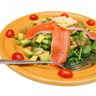 Shrimp and Salmon Salad with Avocado and Olives