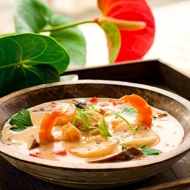 Add lemongrass, lime leaf and zest, ginger, and chili puree to the fish stock.