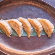 Gyoza are Japanese pan-fried dumplings. Compared to Russian dumplings, they are light and do not leave a heavy feeling or strong sense of fullness. They contain relatively little dough (which is very thin and airy) and a lot of filling.