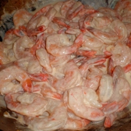 Clean the shrimp and add them to the skillet. Mix everything thoroughly and simmer for 10 minutes.