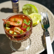 A hybrid of a Bloody Mary and shrimp salad, this popular appetizer is often enjoyed at beach resorts along the Gulf of Mexico.