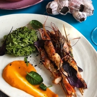 Ginger, garlic, parsley, soy sauce, and white wine are the level of exoticism we've grown accustomed to. Chef John Smith, from a popular American restaurant, combines these elements into a unique dish, but the stars of the show remain the Argentine shrimp, the size of langoustines. When you come across these giants, you need to know how to present them at their best. Cooking these shrimp is a delight, but it's important not to overdo it or overwhelm the sweet meat with an excess of spices. Here, the balance is maintained, and surrounded by a salty, spicy sauce with wine notes and the refreshing bite of herbs, the shrimp showcase their finest qualities.