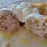Roll all the cabbage rolls in this way (until the filling runs out) and place them tightly in a pot in one or two layers, covering with water, almost covering all the cabbage rolls.